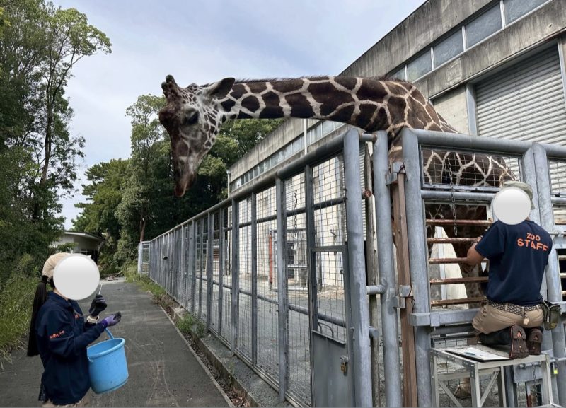 毎日トレーニングを行うことでだんだん形ができ、先日キリンの削蹄とエランドの採血に成功しました!