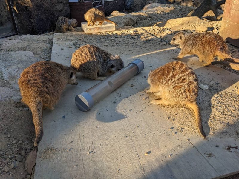 私の個人的な意見ですが、ミーアキャットは特に、最初こそ与えられた新しい玩具や環境に敏感に反応し最大限楽しんでくれるのですが、一週間もすればその熱はすっかり冷める傾向にあると感じています。