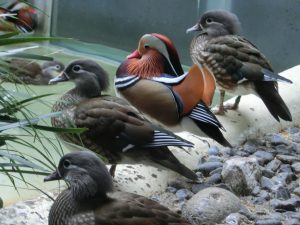 この時期の、オシドリのオスは、羽の色が鮮やかで、私を含め、来園者の目を引き付けています。