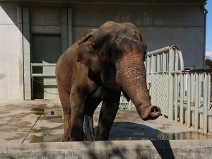 アジアゾウのオスのダーナ。ダーナも私が飼育係になった時の最初の担当動物です。ダーナにもよくいじめられました。担当になったとはいえゾウはなかなか新人担当を認めてはくれません。ゾウの担当者は複数です。ダーナには順位を付けられます。もちろん私が一番下です。ダーナの前を通る時には決まって私だけに水をかけてきました。着替えはいつも持っていました。