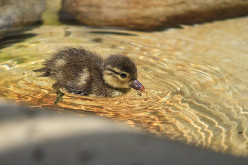 今年は1羽が孵化しました。オシドリは早成性と言って生まれてすぐ巣から出て自らの足で歩き、泳ぎます。餌も早い段階で自ら食べ始めます。