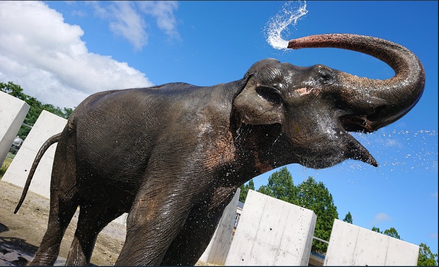 大人のオスゾウには、マスト(ムスト)と呼ばれる大変攻撃的になる時期があります。目と耳の間に側頭腺というものがあるのですが、側頭腺からフェロモンを含んだ濃い液体を分泌させたり、においの強い尿を滴らせる頻尿が起こります。