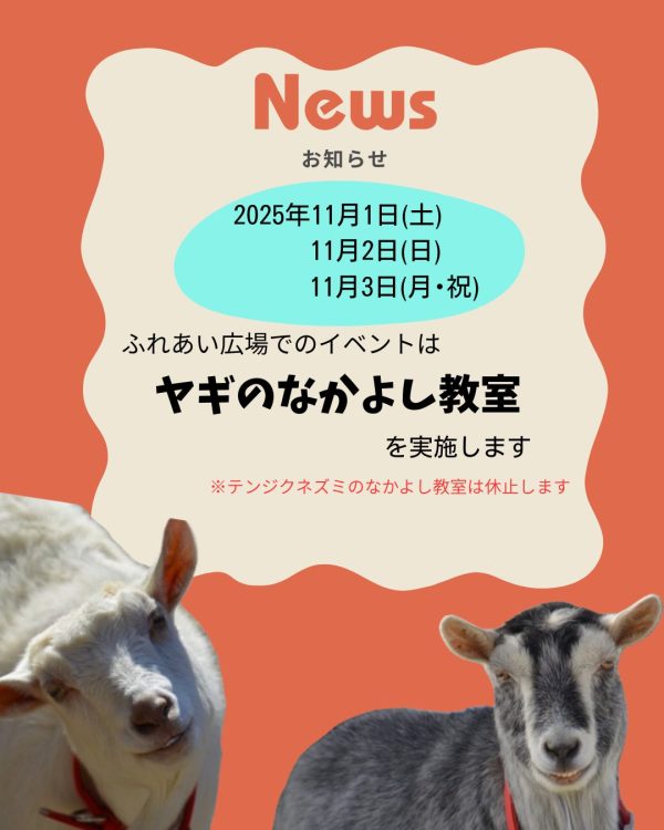 テンジクネズミのなかよし教室を休止し、ヤギのなかよし教室を実施します。