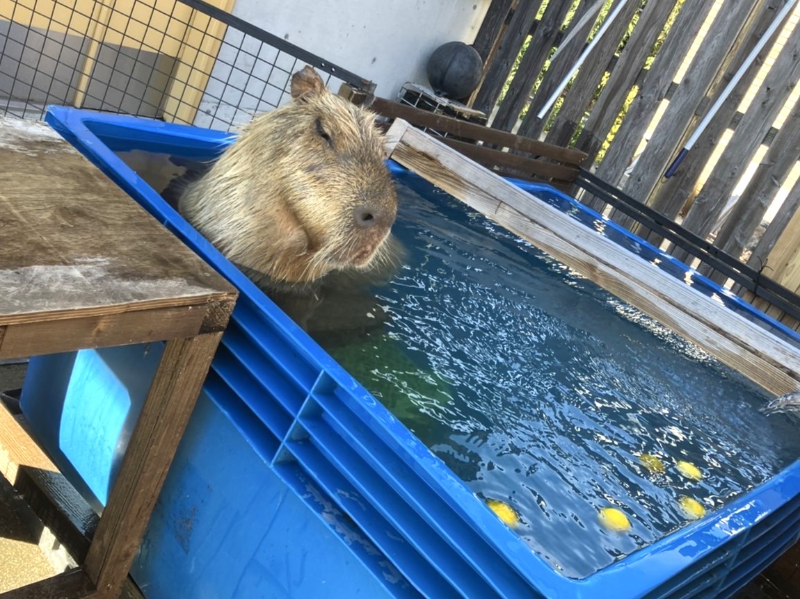 今年も寒い季節が近づいてきました。のんほいパークの冬の恒例イベント「カピバラのお風呂」を12月6日より始めます。あたたかい地域に住んでいるカピバラが冬でも健康に暮らせるようカピバラのプールにお湯をはります。寒い日に気持ちよさそうにお湯に浸かるカピバラの姿をご覧ください。